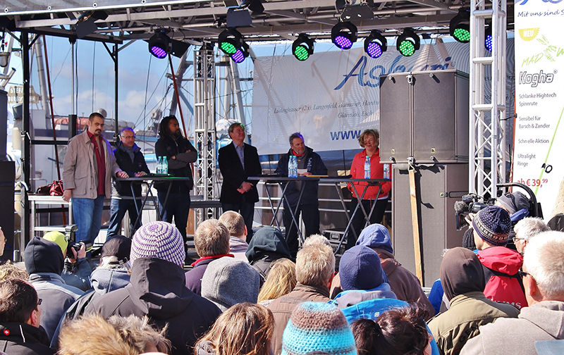 Eindrucksvoll moderierte Rainer Korn (Redakteur beim Blinker) die Veranstaltung und verstand es gut, alle Gesprächspartner zu einer klaren Positionierung zu führen. Während Frau Bettina Hagedorn (MdB) SPD, die Ankündigung von Angelverbotszonen in der AWZ, ohne inhaltliche Substanz verteidigte, bezog Ingo Gädechens (MdB) CDU, klar Stellung gegen Angelverbote.