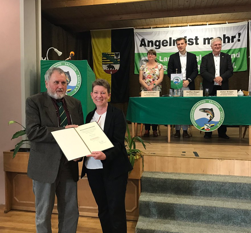 Herrn Gerd Hauser, Angler und Naturschützer des Landeanglerverbandes Sachsen-Anhalt e.V. und Vorsitzender des KAV Weißenfels, die zweithöchsten Auszeichnung des Landes.