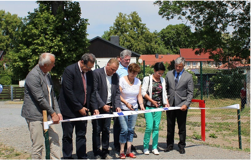 Staatssekretär Klaus Rehda erinnerte in diesem Zusammenhang auch an die Eigenverantwortung der Bevölkerung, die angesichts des Klimawandels nicht auf hundertprozentige Sicherheit durch technischen Hochwasserschutz setzen kann. Flussbereichsleiter Steffen Heling informierte die Gäste im Anschluss über weitere Eckpunkte der Investition. Über 455.000 € für Planung, Grunderwerb, Bau und Überwachung schlugen allein für die jetzt freigegebenen 700 m Helme-Deich, inklusive 260 m Rückstaudeich zu Buche. Mit der Fertigstellung ist nunmehr der Hochwasserschutz an der Helme für ein Bemessungshochwasser von 50m³/s durch die Steuerung der Talsperre Kelbra und fast 54 km Hochwasserschutzdeiche gewährleistet. Zugleich verwies er auf die verschiedenen Fördertöpfe. ELER Programm der EU und das Umwelthilfesofortprogramm des Landes sorgen neben sicheren Deichen auch für landschaftliche Schönheit an den Lebensadern der Region.