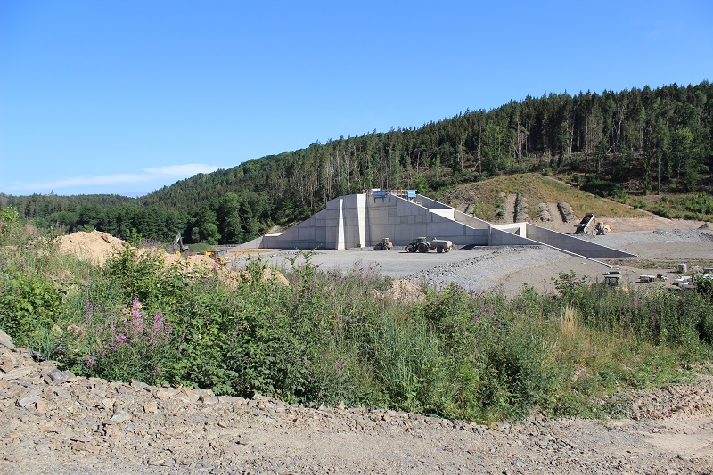 • die Dammkrone wird 190 Meter lang und am Fuß 160 Meter breit und zum Schluss begrünt;
