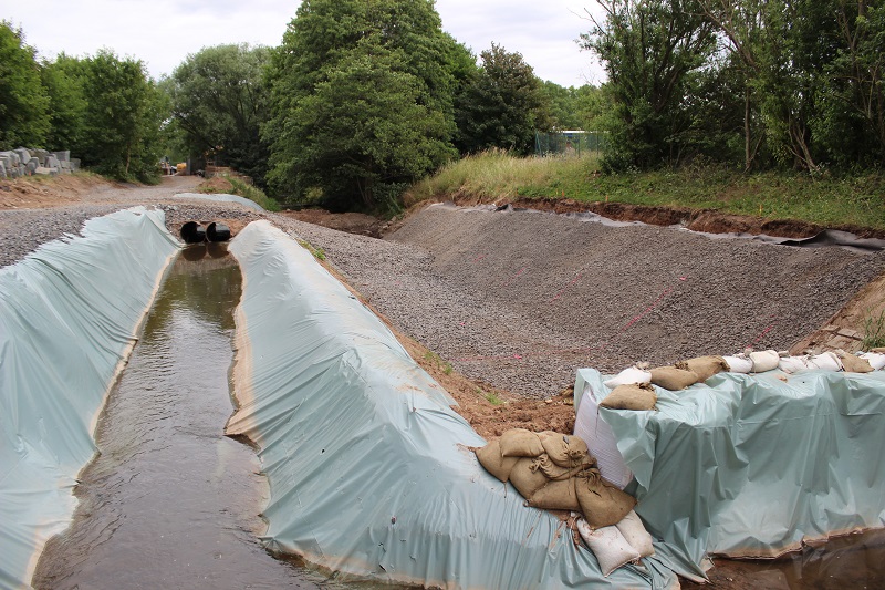 Bild 1 (oben) im Bau befindliches grünes Hochwasserrückhaltebecken;
