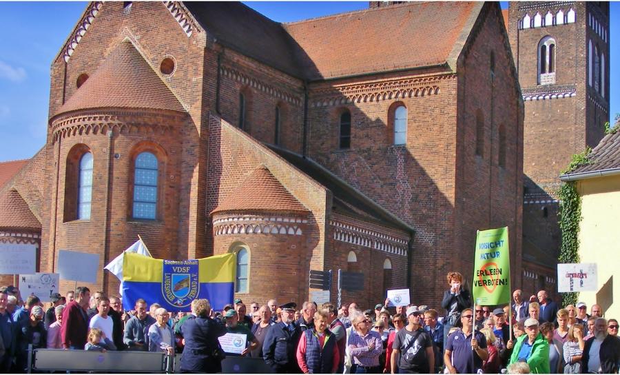 Fast tausend Angler, Jäger, Landwirte und Bewohner folgten dem Aufruf und brachten mit Fahnen, Spruchbändern und ideenreich gestalteten Schildern Ihren Protest zum Ausdruck.