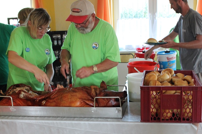So viel Betätigung an der frischen Luft macht natürlich Hunger und zu einem Zeltlager passt natürlich deftiges vom Grill ebenso, wie frisch Geräuchertes. Abgerundet wurde die Speisekarte mit leckerem Spanferkel. Da gehörte ein zweiter oder auch dritter Gang zur Pflicht jedes Feinschmeckers. Gut gestärkt blieb noch genügend Zeit, am Abend den Fischen im See noch einen weiteren Besuch abzustatten.