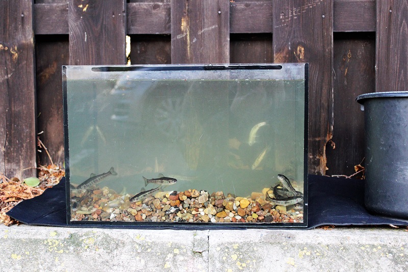 Bild: die markierten Junglachse werden nochmals auf ihre Vitalität begutachtet, ehe sie ausgesetzt werden