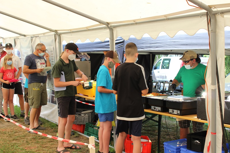 Nach Monaten mit reduzierten sozialen Kontakten waren trotz einzuhaltender Hygiene-Empfehlungen alle Teilnehmer froh darüber, endlich mal wieder ein Gemeinschaftserlebnis genießen zu können. Feste Gruppen erleichterten die Einhaltung der Abstandsregelungen, der Aufenthalt an frischer Luft relativierte den Gebrauch des Mundschutzes auf ein Mindestmaß und viele Hygienepunkte ersparten lästig lange Wege. Verschweigen wollen wir nicht, dass das aufgestellte Hygienekonzept so mancher Aktivität enge Schranken und nicht wenigen ausgefallenen Ideen ein vorzeitiges Ende setzte. Da war es auch nicht verwunderlich, dass bestimmte Abläufe in der Praxis einer Korrektur unterzogen werden mussten. Dank verständnisvoller Teilnehmer und Betreuer und einem kostenlosen Mundschutz mit LAV-Motiv, waren kritische oder nachdenkliche Blicke nicht sofort offensichtlich und verloren bei Beachtung der Abstandsregeln an Brisanz.