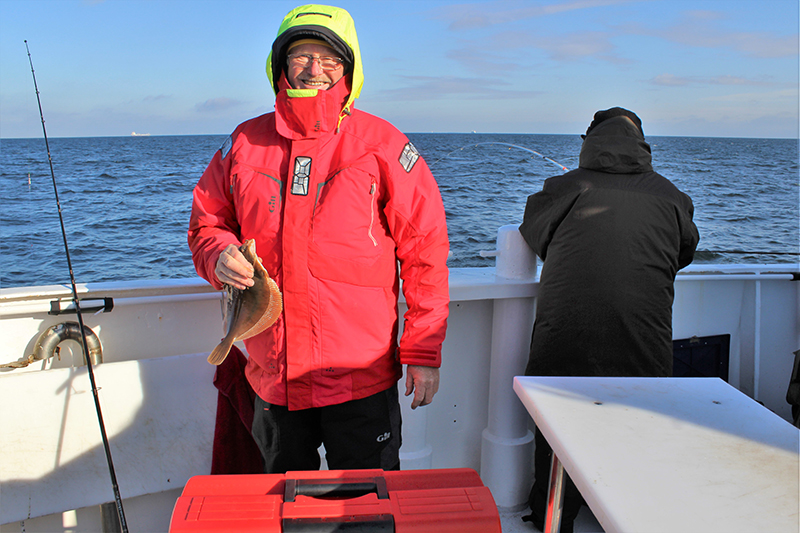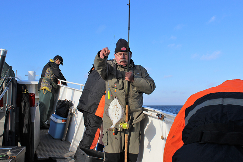 Jede Menge „Platten„ wurden an beiden Tagen gefangen und das Spektrum reichte von Schollen, über Flundern bis hin zum Steinbutt. Zwischendurch blieb noch Zeit über die Politik im Großen wie im Kleinen zu reden. Immer wieder stand die Festschreibung der Angelverbote in den Meeresschutzgebieten der AWZ in der Kritik. Allen, schon damals nicht glaubwürdigen Beteuerungen des Umweltministeriums zum Trotz, sind die einzig „Dummen“ weiterhin die Angler, während Tunnel- und Pipelinebauer, Schleppnetzfischer und Ozeanriesen weiterhin „Carte blanche“ in diesen Gebieten haben. Der schon damals geäußerte Verdacht, dass es sich bei den Maßnahmen weniger um den Schutz als um die Zurückdrängung der Angelfischerei ging, ist bis heute nicht entkräftet.